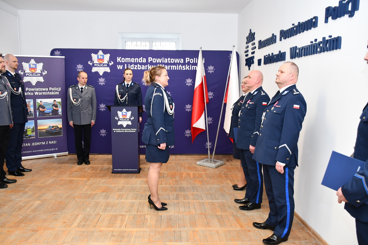 Podczas uroczystości odczytano rozkazy personalne Komendanta Wojewódzkiego Policji w Olsztynie, po których insp. Jarosław Wiśniewski złożył insp. Mariuszowi Wiśniewskiemu Zastępcy Komendanta Wojewódzkiego Policji w Olsztynie meldunek o zdaniu obowiązków na stanowisku Komendanta Powiatowego Policji w Lidzbarku Warmińskim. Następnie podinsp. Barbara Krzyżewska dotychczas piastująca stanowisko Komendanta Powiatowego Policji w Kętrzynie złożyła meldunek o objęciu obowiązków na stanowisku Komendanta Powiatowego Policji w Lidzbarku Warmińskim.