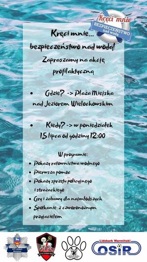 - Zapraszamy na "Kręci mnie bezpieczeństwo nad wodą" W poniedziałek (15.07.2024 r.) od godziny 12:00 na plaży miejskiej nad jeziorem Wielochowskim